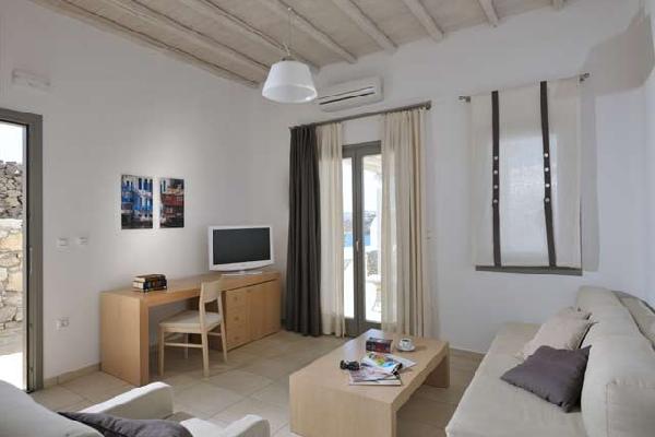 Our standard Mykonos rooms are on the ground floor facing the Ornos bay with private terrace and sitting area and can accommodate up to three people (25 sqm).