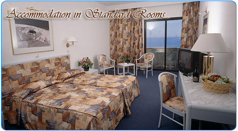 All rooms are fully air-conditioned with balcony, bathroom with bathrobes and beach towels, hairdryer, direct dialing telephone, radio and music channels, television with satellite programs and central video, electronic safe (free of charge) and mini-bar.