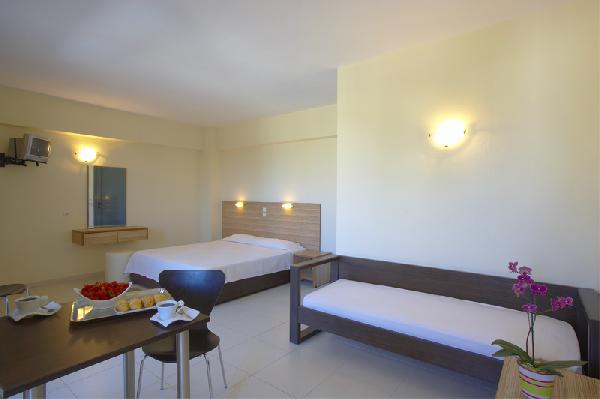 La Stella’s one room studios are around 35 square meters and accommodates from one till three persons. Offers a fully equipped kitchen with fridge, coffee machine,Water heater, private balcony with view, bathroom with shower, satellite tv,hairdryer,aircondtion,safe box ,telephone and Wi-Fi access.Breakfast buffe is included in the price
